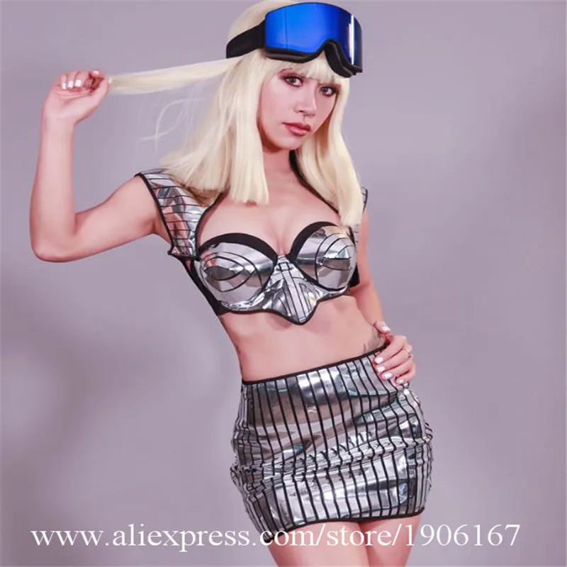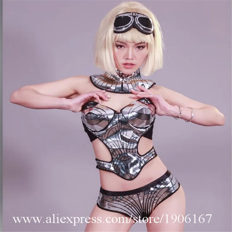Hot Deal Nightclub Sexy Lady Silver Mirror Woman Suit Clothing Bar Dance Team Dress Alternative Design Perfo